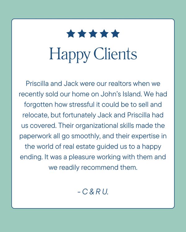 Starting their Real Estate careers in Burlington, VT, (before computers or the internet), they moved to the Isle of Palms in 1991. Priscilla retired from a long award-winning career in training and development, working with companies all over the world. Happy to be home full time, working with Jack in real estate...